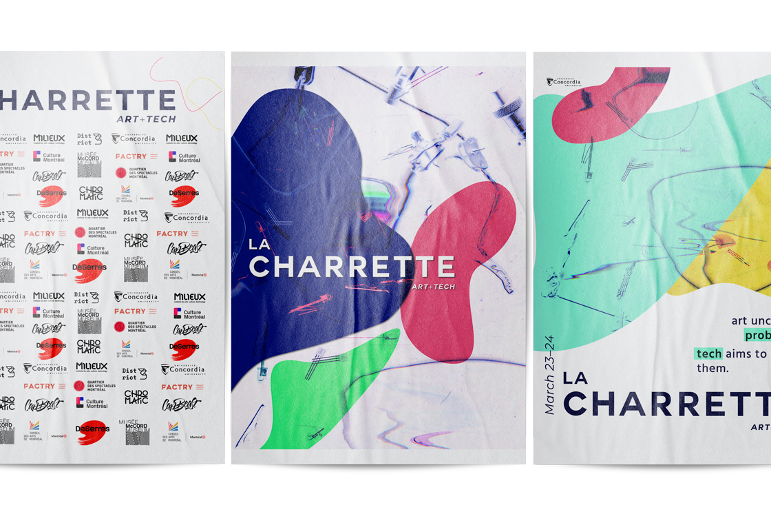 As part of a team at District 3, I contributed to the planning and execution of La Charrette, an event designed to bring together the fine arts and engineering faculties to learn about and contribute to the evolving creative field in Montreal. I lead the art direction, establishing the visual identity of the event and standardizing the treatment of the final graphic assets. The final identity of this first edition of the event was based on an original series of scanographic images.